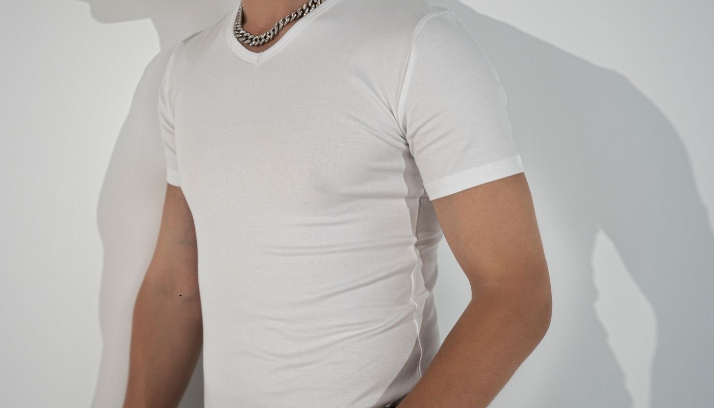 Upgrade your wardrobe with this classic white half-sleeve V-neck, crafted from a premium blend of 96% cotton and 4% Lycra. The soft, breathable fabric ensures all-day comfort, while the slight stretch offers a flexible, tailored fit. Ideal for layering or wearing on its own, this versatile V-neck is perfect for casual outings, work, or relaxed everyday wear.